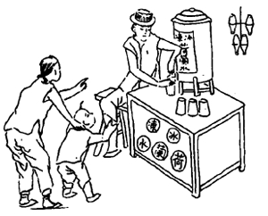 汽水!斑@可是一個(gè)新鮮的玩意兒,喝到肚子里打嗝,熱氣從口腔和鼻孔噴出來,身體就會涼快下來,所以,汽水很受歡迎!