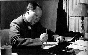 當(dāng)他走進(jìn)毛澤東的辦公室,毛澤東正握著一管毛筆,在抄寫唐詩,呂厚民找到位置,打上燈光之后,就拍了幾張照片。