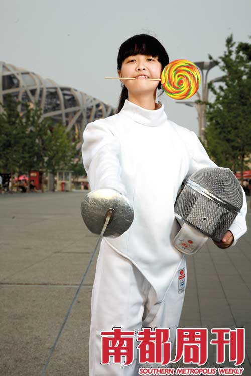 中華女子學院經(jīng)濟管理系擊劍隊大一女生。攝影·邵欣