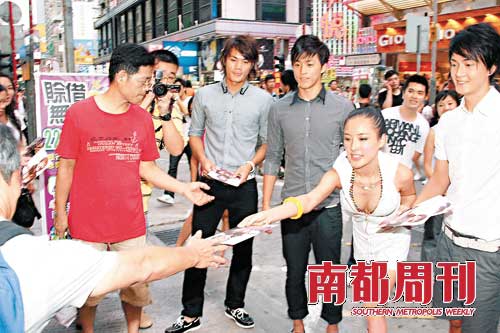 事實上,“靚模寫真集”并非是首次出現(xiàn)在香港書展上,近幾屆書展都會冒出少量幾本;仡櫹愀蹠苟甑陌l(fā)展,以明星、模特為噱頭招徠人氣,這種宣傳手段自1990年首屆香港書展早已有之,首次接手香港書展的香港貿(mào)發(fā)局秉著“像做珠寶展一樣做書展”的思路,請來明星大力宣傳,那一年新當(dāng)選的香港小姐袁詠儀和明星蕭芳芳都應(yīng)邀出現(xiàn)在現(xiàn)場。