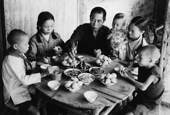 徐永輝向我們展示的厚厚資料照片,第一張就是1950年第一次拿起相機(jī)拍攝的照片。當(dāng)時(shí),第一次下鄉(xiāng)的徐永輝,循著“解放區(qū)的天是睛朗的天”的歌聲,找到了嘉興農(nóng)民葉根土的家,為他們?nèi)遗南铝艘粡堃律酪h褸的全家福。從這一天起,他就開始了對(duì)葉根土一家堅(jiān)持不懈的追蹤拍攝。3年后,葉家大女兒結(jié)婚,特地請(qǐng)徐永輝當(dāng)嘉賓,徐永輝送上的賀禮是新舊兩張“全家福”,被根土作為傳家寶贈(zèng)給女兒當(dāng)“嫁妝”。