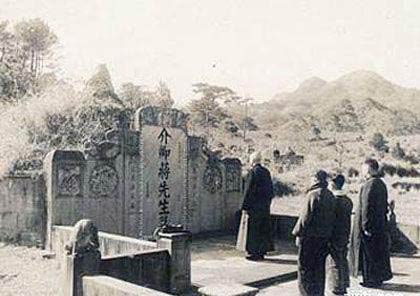 兒媳、孫子都來了以后,蔣介石領(lǐng)著他們一同來到蒼松環(huán)繞的蔣母墓前。