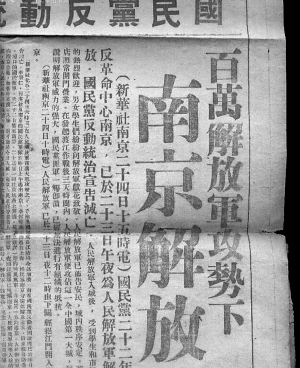 在人民解放軍的強(qiáng)大攻勢(shì)下,國(guó)民黨南京政府土崩瓦解,黨政官員倉(cāng)皇南逃,駐防南京及蘇南各地的國(guó)民黨軍紛紛棄守而逃。各城市地下黨組織根據(jù)事先的布置,組織共產(chǎn)黨員和積極分子維護(hù)城市秩序,熱烈歡迎解放軍的到來(lái)。解放軍第8兵團(tuán)第35軍于23日午夜進(jìn)占“總統(tǒng)府”。5月1日,中共中央電賀南京解放,指出:“人民解放軍第二、第三兩大野戰(zhàn)軍執(zhí)行人民解放軍總部司令,奮勇前進(jìn),橫渡長(zhǎng)江,敵軍望風(fēng)披靡,南京迅獲解放,國(guó)民黨反動(dòng)派統(tǒng)治從此宣告滅亡,江南千百萬(wàn)人民迅即重見天日,全國(guó)歡騰,環(huán)球鼓舞!