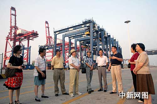 詩人們一走入連云港港口,巨大的塔吊和五彩繽紛的集裝箱立刻映入眼簾。詩人們大多是第一次到港口,立刻被這里獨特的景致所吸引。當了解到,連云港港口是世界綜合實力百強港、全國十強港,2009年港口吞吐量將達到億噸,集裝箱突破300萬標箱,大家再次驚嘆,涌動起無限的詩情。