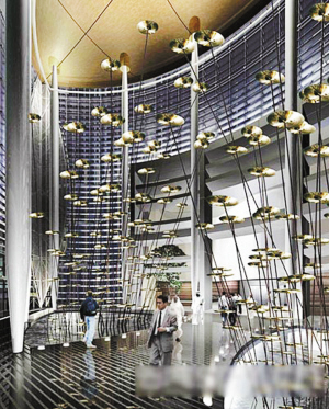 這件作品將包括196個(gè)青銅、黃銅,及鍍金材質(zhì)的打擊樂(lè)器鈸,每一個(gè)鈸的材料都來(lái)自不同的國(guó)家,它們合在一起會(huì)發(fā)出令人驚訝的柔和水聲,那聲音像是從天花板上滴下來(lái)的水滴的聲音。 (文文)