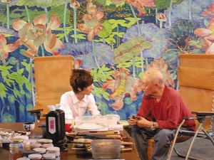 黃永玉在北京的居所——萬荷堂充滿了田園風(fēng)光和藝術(shù)氣氛,成了本次“求學(xué)”對話的最佳地點。來到京郊,漸漸行至萬荷堂,原本因胃痛而精神不佳的郭敬明忽然緊張起來,見慣了大場面的他反復(fù)表示“很緊張”。沒有上課鈴,《大師課堂》悄然開始,“老師”也走了出來。首次見到黃永玉老先生,郭敬明不停地翻看手中的文稿,為接下來的會面做著準(zhǔn)備。不過,我們從他的眼神中,也看出了他內(nèi)心的期待。