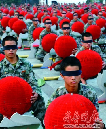這次參加光立方演出的戰(zhàn)士中,有一部分參加過奧運會開幕式“擊缶而歌”和字模表演。參加過奧運擊缶表演的戰(zhàn)士李建表示,這比奧運缶的表演難度要大。奧運缶整個表演時間只有3分28秒,而光立方的表演在場上的時間100分鐘。奧運缶只需要把握好動作節(jié)奏就可以了,而光立方的表演還要和視頻圖案變化融為一體。在動作的數(shù)量上也是奧運缶表演動作的數(shù)倍。