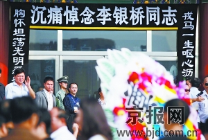 今天上午10時(shí),毛澤東衛(wèi)士長李銀橋追悼會在八寶山殯儀館舉行。李銀橋生前同事、友人和眾多滿懷對老人崇敬之情的市民參加了遺體告別儀式。李敏、毛新宇等毛澤東親屬也來到追悼會現(xiàn)場。