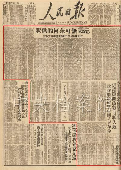1949年8月5日,美國國務(wù)院發(fā)表了《美國同中國的關(guān)系》白皮書。毛澤東對(duì)此十分重視,認(rèn)為是用來教育中國人民的一次極好機(jī)會(huì)。8月12日至9月16日,毛澤東先后為新華社撰寫了六篇社論,包括《無可奈何的供狀——評(píng)美國關(guān)于中國問題的白皮書》、《丟掉幻想,準(zhǔn)備斗爭》、《別了,司徒雷登》、《四評(píng)白皮書——為什么要討論白皮書》、《五評(píng)白皮書——“友誼”還是侵略》、《六評(píng)白皮書——唯心歷史觀的破產(chǎn)》。這些社論揭露了美國對(duì)華政策的帝國主義本質(zhì),指出白皮書“是一部顛倒黑白的‘杰作’”,“是美帝國主義反動(dòng)政策在中國慘敗的史冊(cè)”,批評(píng)了國內(nèi)一部分資產(chǎn)階級(jí)知識(shí)分子對(duì)美帝國主義的幻想,號(hào)召他們“丟掉幻想,準(zhǔn)備斗爭”。社論還論證資產(chǎn)階級(jí)共和國方案在中國的破產(chǎn),對(duì)中國近代革命的發(fā)生和中國革命的勝利,作了理論上的說明。這些社論發(fā)表后,引起了全國各民主黨派、各人民團(tuán)體、各報(bào)社、各學(xué)校以及各界人士的關(guān)注和討論,掀起了譴責(zé)美國白皮書的熱潮。