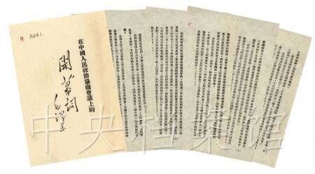 1949年 9月 21日至 3O日,中國人民政治協(xié)商會議第一屆全體會議在北平中南海懷仁堂召開,出席會議的各方面代表 662人。毛澤東主持會議并致開幕詞,他說: “占人類總數(shù)四分之一的中國人從此站立起來了。 ”會議通過了《中國人民政治協(xié)商會議共同綱領(lǐng)》,指出中華人民共和國的性質(zhì)是以工人階級為領(lǐng)導的、工農(nóng)聯(lián)盟為基礎(chǔ)的、團結(jié)各民主階級和少數(shù)民族的人民民主專政國家,并為新中國的政權(quán)機關(guān)、軍事制度、經(jīng)濟政策、文教政策、民族政策和外交政策制定了總原則。會議還通過了《中國人民政治協(xié)商會議組織法》、《中華人民共和國中央人民政府組織法》,并作出決議: (1)中華人民共和國定都北平,即日起改名為北京; (2)中華人民共和國紀年采用公元; (3)中華人民共和國國歌未正式制定前,以《義勇軍進行曲》為國歌;(4)國旗定為五星紅旗。大會選舉出以毛澤東為主席,由 180人組成的第一屆中國人民政治協(xié)商會議全國委員會;選舉了由 63人組成的中央人民政府委員會,毛澤東為中央人民政府主席,朱德、劉少奇、宋慶齡、李濟深、張瀾、高崗為副主席,周恩來、陳毅、董必武等56人為政府委員會委員。