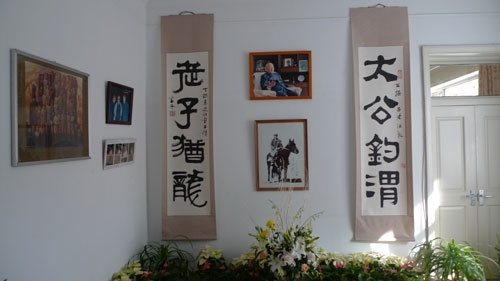 呂老遺像兩側,是散文家黃苗子先生寫一副對聯(lián):“太公釣渭 老子猶龍”。呂彤林說:“父親 喜歡黃苗子的樸拙的書法,對姜太公和老子那種去留無意的境界很向往,對名利不以為意!
