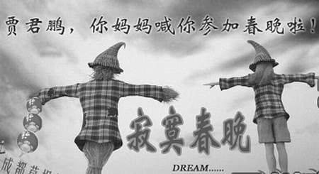 雖然離春節(jié)還有一段時間,但山寨春晚的話題再一次被提起。昨日,以拍攝草根電影、山寨奧運(yùn)、山寨克隆版《風(fēng)聲》、去年舉辦豬堅強(qiáng)草根春晚而聞名的“成都草根劇組”再一次以樂活精神舉起了成都草根春晚的旗幟——今年,成都的草根春晚將大打網(wǎng)絡(luò)牌,將寂寞黨、賈君鵬等一系列轟動網(wǎng)絡(luò)的熱門話題納入春晚節(jié)目中,且春晚名字就叫做“寂寞春晚”。為了辦好草根春晚,網(wǎng)友正召集綠林草根,為“寂寞春晚”尋找不甘寂寞的坊間好漢以及山寨場地。