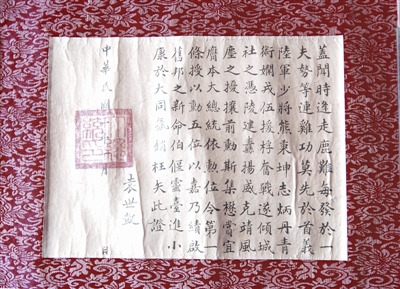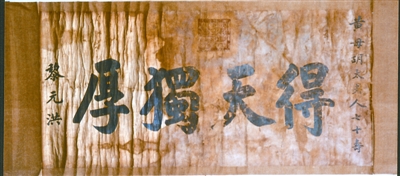 1916年辛亥首義志士大黃申薌之母胡太夫人七十壽誕之際,時任民國大總統(tǒng)黎元洪為之題寫”得天獨(dú)厚“橫披,以賀其壽。據(jù)紀(jì)念館館長梁華平介紹,受以往對其政治評價的影響,黎元洪手書真跡未受應(yīng)有重視,大多散失。這件“得天獨(dú)厚“橫披手跡更是彌足珍貴。 (記者 蔣太旭 通訊員 何廣 實習(xí)生 趙紅)