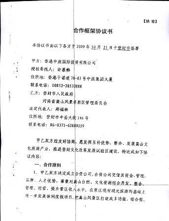 被少林寺方丈釋永信辟謠多次的“少林寺上市”或許并非空穴來風,不過這一次秘密運作2011年“上市”的是登封市政府,連少林寺也被蒙在鼓里。香港中旅集團與登封市簽署的《合作框架協(xié)議書》和《登封市政府常務會議紀要》顯示,雙方確定斥資一億元成立“港中旅(登封)嵩山少林文化旅游有限公司”,其中港方占51%股本控股,少林寺門票經(jīng)營權等嵩山少林景區(qū)資產則被登封市作價4900萬元作為入股的一部分。(12月16日千龍網(wǎng))
