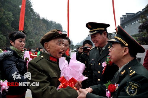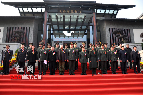 湖南省軍區(qū)司令員張永大,中共湖南省委常委、省軍區(qū)政委楊忠民,軍表捐贈(zèng)者、原湖南省軍區(qū)副司令員黃明開,湖南省軍區(qū)副司令員張中湘,湖南省軍區(qū)副政委萬(wàn)建華,湖南省軍區(qū)副政委魏永景,湖南省軍區(qū)參謀長(zhǎng)李蘭田,湖南省軍區(qū)政治部主任劉新等出席開展儀式并剪彩。為大渡河十八勇士吹響沖鋒號(hào)、92歲高齡的老紅軍張生榮、抗洪英雄李向群烈士的父親李德清、肖日忠烈士的女兒肖麟也親臨現(xiàn)場(chǎng)為開展祝賀。