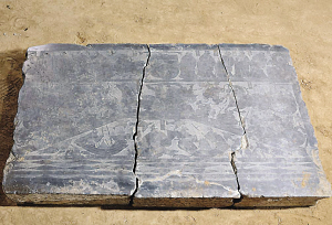 墓地被認(rèn)定為曹操墓,與盜墓賊偷盜的兩件文物有關(guān)。“曹操墓”所在地,原為一窯場(chǎng)取土點(diǎn),被挖掘五六米深后遭到廢棄,有村民在此種上了莊稼。2005年底,一村民在此澆地時(shí),發(fā)現(xiàn)有一處地方水一直向下流,經(jīng)查看發(fā)現(xiàn)那里有一個(gè)洞,推測(cè)下面可能是古墓;過春節(jié)時(shí),有人發(fā)現(xiàn)該墓已經(jīng)被盜,陸續(xù)被盜得很嚴(yán)重。當(dāng)?shù)嘏沙鏊群笞チ?批盜墓賊,38人。2008年,安陽縣安豐鄉(xiāng)派出所從盜墓賊手中繳獲三塊墓內(nèi)畫像石,畫像石上部有“主簿車”、“咸陽令”、“紀(jì)梁”、“侍郎”等字樣,其下部為水陸攻戰(zhàn)圖場(chǎng)面。從畫像石的銘文來看,墓葬規(guī)格相當(dāng)高,應(yīng)該為漢魏時(shí)期的高級(jí)貴族墓葬。在這些文物中,最珍貴的莫過于石枕與刻銘石牌了。石枕上刻有“魏武王御用”字樣,刻銘石牌上也有“魏武王”字樣?逃小拔何渫酢钡氖圃俅螕荛_曹操墓的迷霧。因?yàn)檫@和曹操的身份相符合:曹操生前為王,他兒子曹丕做了皇帝以后,他才被追封為魏武帝;這兩處的“魏武王”完全與他死時(shí)的身份相符。