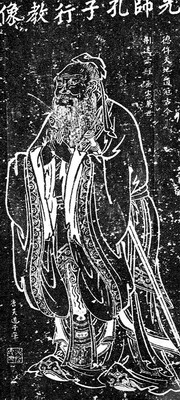 人們通?吹降摹翱鬃有薪滔瘛弊钤绯鲇谔瞥膶m廷畫家吳道子,但他似乎并沒有認(rèn)真查考資料。另一方面,受《孔叢子》偽書說的影響,以后的孔子畫像便以訛傳訛,使孔子畫像、雕像都濃眉長髯。實際上,前人也指出孔子沒有須眉,如明陳繼儒《群碎錄》、清杭世駿《訂訛類編》就說:孔子無須,今像多須,誤。