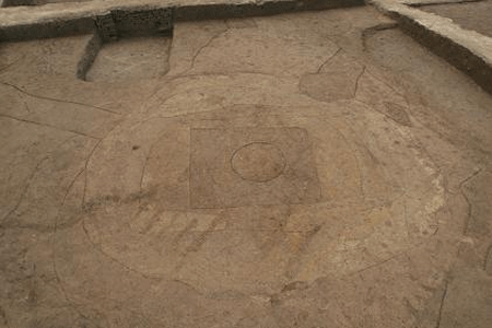2、發(fā)現(xiàn)夯土祭壇,在山東地區(qū)尚屬首次發(fā)現(xiàn),國內(nèi)罕見。祭壇位于城內(nèi)南部正中偏西部位,距南墻21.5米。南北殘長34.5米,東西殘寬19米,殘存高度0.7—0.8米。中心為直徑5.5—6米的圓臺形,向外依次為不同土色的方形、長方形及圓形、橢圓形相套的夯筑臺基。外圍有多層厚5—12厘米不等的水平狀夯土堆積,間有白色沙土或灰燼薄層。祭壇邊緣多被晚期遺跡破壞,中心部位到春秋戰(zhàn)國時(shí)期仍然保存完好,其南北干道也從祭壇西側(cè)繞行,這表明,在戰(zhàn)國時(shí)期人們對祭壇仍然保持著某種程度的崇拜。