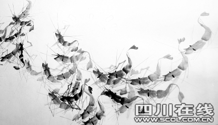 昨日下午,記者來(lái)到衛(wèi)保貴生前的家中,一進(jìn)門就看見(jiàn)一大幅衛(wèi)老畫的蝦圖,畫中的蝦通明剔透,跳脫自如,神韻畢現(xiàn)。