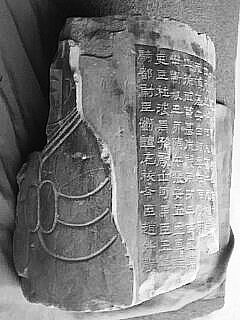在豐樂鎮(zhèn)村南豐行政村與北豐行政村之間,有一條灌溉渠,渠北約30米的地方,有一堆磚頭,磚堆旁有一圓柱狀的石頭。馮龍海覺得這東西能當(dāng)個(gè)不錯(cuò)的門墩,就吆喝朋友,把它抬到了車上!盎貋硪豢,嘿,還有字有畫的。”馮龍海說,“我不識(shí)字,就叫來陳東元(陳黎明),讓他看了看!