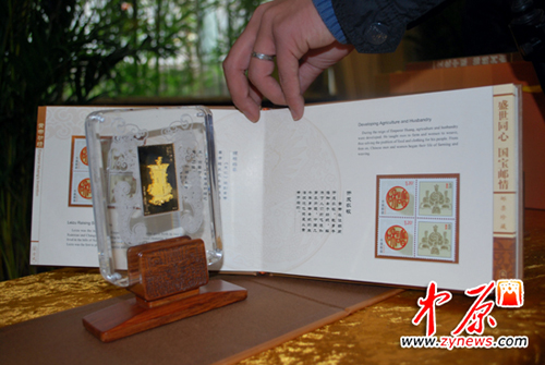 本次活動(dòng)還現(xiàn)場(chǎng)展示了由中國(guó)郵政集團(tuán)公司批準(zhǔn)發(fā)行的《河之南》郵票珍藏冊(cè),《國(guó)寶郵情》雙連壺。內(nèi)容涵蓋建國(guó)珍郵、中原“國(guó)寶”、貴金屬等多個(gè)方面。該系列郵票濃縮了中原文化的博大精深,彰顯中原文化在中國(guó)文明史上的核心地位。這也是鄭州市郵政局連續(xù)五年為拜祖大典奉獻(xiàn)的文化盛宴。