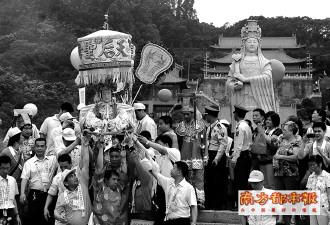 下午1時40分許,從臺灣專程趕來的500信眾,手捧數(shù)十尊天后像隆重入場祭拜。他們穿著傳統(tǒng)服裝,攜帶各種旗幟及獅陣、太子陣、將爺陣等隊(duì)形進(jìn)入天后宮。據(jù)說,昨天午后1時40分是拜祭媽祖的吉時。據(jù)悉,今后臺灣信眾有望繼續(xù)前往南沙天后宮參加媽祖誕。