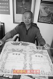 “這張海報(bào)有人出價(jià)萬(wàn)元,我都不舍得賣(mài)。”昨日上午10時(shí)許,見(jiàn)有人來(lái)訪,50歲的李杰拿出自己最?lèi)?ài)的寶貝——一張梅蘭芳宣傳畫(huà),這是新中國(guó)成立前印制的。宣傳畫(huà)上,京劇大師梅蘭芳面帶微笑,依靠在一張沙發(fā)上,宣傳畫(huà)的題詞為郭沫若!靶∥輭Ρ谏,都是精選出來(lái)的。在我家的保險(xiǎn)柜里還有近千幅海報(bào),各種各樣的都有!崩罱苷f(shuō)。