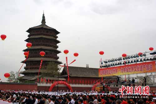 首屆中國•應(yīng)縣釋迦塔國際旅游文化節(jié)今日開幕,由此山西拉開應(yīng)縣木塔申報世界文化遺產(chǎn)的序幕。
