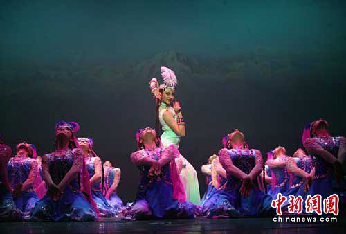 圖為新疆和田地區(qū)新玉歌舞團精心編排的大型歌舞晚會《萬方樂奏》在烏魯木齊舉行了匯報演出,6月8日該歌舞團將赴北京國家大劇院舉行專場演出。