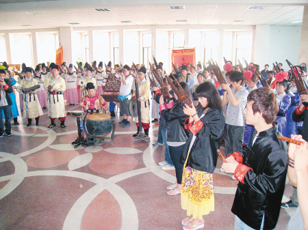 上圖為6家樂社為在中國文化遺產(chǎn)日期間舉行大型西安鼓樂演出進(jìn)行排練。