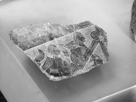 專家孫新民說,該銘牌是在鋪地石的下面發(fā)現(xiàn)的,是用犀器做的盾牌。