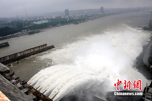 中新網(wǎng)丹江口7月22日電 (陳攀霄)22日13時(shí)24分,丹江口大壩開閘泄洪,這是丹江口大壩主體工程全線貫通以來首次開閘泄洪。