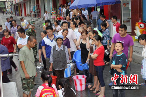中新網九寨溝8月14日電(記者劉忠俊)14日,記者從四川九寨溝縣消防大隊獲悉,由于遭遇特大暴雨泥石流侵襲,九寨溝縣城水源受到重大污染,全城已停水,城區(qū)兩萬多群眾生產生活用水告急。