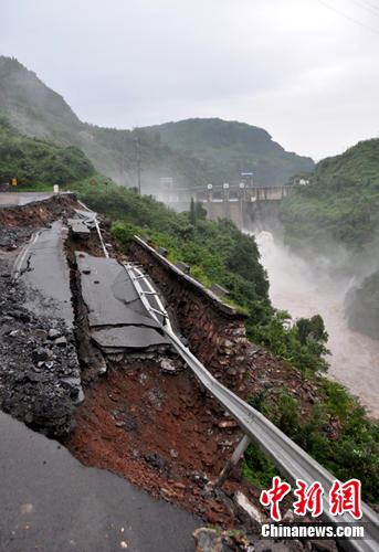 中新網(wǎng)雅安8月22日電(劉忠俊 華洋)8月22日凌晨,記者從四川雅安市交通部門獲悉,國道108線雅安市境內(nèi)滎經(jīng)K2432+800-900三大灣處因連日暴雨致使路基下沉,下沉深度近2米,已實(shí)行雙向交通管制,禁止一切車輛通行。由于暴雨不停沖刷跨塌路基,使至路基基礎(chǔ)軟化。一擔(dān)路基跨塌阻塞河道,將形成“堰塞湖”。 嚴(yán)重威脅下游7個(gè)鄉(xiāng)鎮(zhèn)沿河一帶群眾生命安全和花灘電站水庫大壩安全。