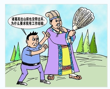 “諸葛亮出山前也沒帶過兵,為什么你們一定要求我有工作經(jīng)驗(yàn)?”昨(18)日,名為“夢游王子”的網(wǎng)友在大楚網(wǎng)社區(qū)發(fā)帖講述他求職屢屢受挫的經(jīng)歷,質(zhì)疑企業(yè)用人苛求工作經(jīng)驗(yàn)。