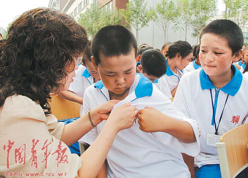 今天(5日),青海省玉樹縣12歲的藏族學(xué)生更尕求占,在天津開始了自己的初中生活。接收她的天津市東麗區(qū)耀華濱海學(xué)校為共計(jì)563名玉樹學(xué)生舉行了開學(xué)典禮,他們當(dāng)中絕大多數(shù)是藏族學(xué)生。5個(gè)月前,他們的學(xué)業(yè)和生活被突如其來(lái)的地震打斷。