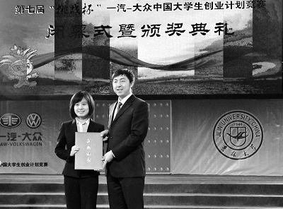 日前,有"大學(xué)生科技奧林匹克大賽"之稱(chēng)的"挑戰(zhàn)杯"中國(guó)大學(xué)生創(chuàng)業(yè)計(jì)劃競(jìng)賽終審決賽在吉林大學(xué)落下帷幕,山東經(jīng)濟(jì)學(xué)院的《山東潤(rùn)禾科技有限責(zé)任公司》創(chuàng)業(yè)團(tuán)隊(duì)獲得最高獎(jiǎng)-金獎(jiǎng),而這個(gè)創(chuàng)業(yè)團(tuán)隊(duì)的隊(duì)長(zhǎng)就是該校大四女生-楊婷。令人驚奇的是,這個(gè)女生是學(xué)德語(yǔ)的,而她率隊(duì)獲獎(jiǎng)的項(xiàng)目竟然是研究農(nóng)用化肥的!