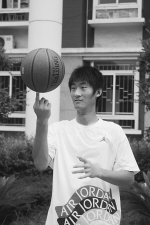 葉駿正在玩籃球。 記者向潔攝