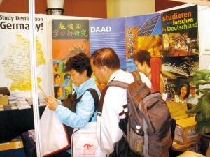2009年留學(xué)已進(jìn)入申請(qǐng)的關(guān)鍵期。近日,國(guó)際教育展接連舉行,大大小小不下十場(chǎng),而最重頭的啟德教育展和中國(guó)國(guó)際教育展也將在本周六分別在花園酒店和東方賓館舉行。記者在教育展上發(fā)現(xiàn),到教育展上咨詢(xún)的多數(shù)是家長(zhǎng),咨詢(xún)會(huì)大多成了“家長(zhǎng)會(huì)”。