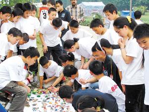 漂亮的別墅、美麗的天使、威武的坦克……各式各樣的小玩具被心理救援隊(duì)員們一字?jǐn)[開(kāi)!懊咳颂粢粋(gè)喜歡的,然后坐到沙盤(pán)邊來(lái),聽(tīng)我給你們講故事好不好?”復(fù)旦大學(xué)心理學(xué)教授申荷永招呼著。很快,每個(gè)沙盤(pán)邊就圍坐了七八個(gè)學(xué)生!澳銥槭裁匆x房子模型呢?”“我家的房子被震壞了,希望能有一幢堅(jiān)固的房子……”心理援助就以這樣問(wèn)答的方式展開(kāi)。通過(guò)這樣挑選玩具后自由表達(dá)心聲的方法,能讓孩子逐漸擺脫對(duì)地震的恐懼感,大膽說(shuō)出自己的想法和愿望。