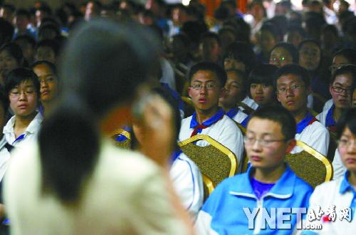 “天佑中華”主題教育活動從下午4點30分開始,在簡單的問候后北京十一學(xué)校教導(dǎo)處陳雪芬副主任向北川中學(xué)校長劉亞春詢問,“是什么力量讓北川中學(xué)克服如此重重困難?”劉亞春校長難掩悲痛地說:“其實作為教師,苦難中首先救助學(xué)生是教師本能的表現(xiàn)。對于那些罹難的師生來說,他們的生命不是消逝了而是永恒了,幸存者也變得更加堅強。在今后的日子里,各方的關(guān)心和關(guān)注以及北川中學(xué)師生堅強不屈的意志,都是我們戰(zhàn)勝艱難的最基本動力!痹捯魟偮洌本┦粚W(xué)校近千名學(xué)生報以熱烈的掌聲。