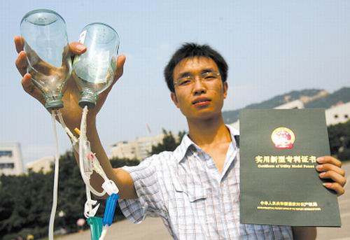 據(jù)了解,余江搞這個發(fā)明是看到地震災區(qū)缺少醫(yī)護人員報道后產(chǎn)生的念頭。他是利用暑假兩個月時間刻苦研發(fā),終于發(fā)明了“自動輸液器”,并獲得了國家專利。目前,市場上比較先進的輸液器價格很高,而余江發(fā)明的“自動輸液器”的成本大概只比現(xiàn)在一般輸液器的成本高出20%左右,而且不用手動操作,可減輕醫(yī)護人員勞動強度。目前,他的發(fā)明受到了很多醫(yī)院的關注。(楊崢 連肖)