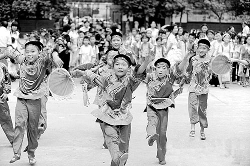 正是扎根在這樣深厚的傳統(tǒng)文化土壤中,“贛南采茶戲進(jìn)校園”活動(dòng)才有了無(wú)限生機(jī)。紅旗二小教師鐘麗華說(shuō):“現(xiàn)在家庭條件好了,許多孩子課余都會(huì)去學(xué)些器樂(lè)、舞蹈,但很大部分是三分鐘熱情。一方面是因?yàn)楹⒆觽兣d趣還沒(méi)定型,另一方面是學(xué)習(xí)環(huán)境使然,比如要孩子去學(xué)鋼琴,許多家庭祖祖輩輩都沒(méi)摸過(guò)鋼琴,孩子學(xué)習(xí)氛圍不濃。但學(xué)采茶戲就不同,贛南許多中老年人都有采茶戲情結(jié),能哼一段舞兩手的大有人在,像在我們學(xué)校,許多孩子學(xué)了戲回家,都是一家三代共同溫習(xí)。孩子在此找到了文化的根,學(xué)采茶戲成了家庭日常生活的內(nèi)容之一。”