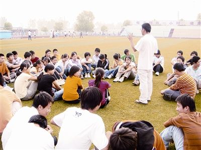 昨日上午9時(shí),記者在該校操場上看見,50多名學(xué)生正在操場上玩一種“真心話大公開”游戲。