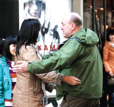 黃坤用英語向一位高大的中年老外發(fā)出了擁抱請求,這位美國人突然愣了一下。接著,黃坤又向他解釋了一遍。這一次,老外張開寬闊的臂膀緊緊地把黃坤擁入懷中,連聲說:“No Problem!(沒問題)”