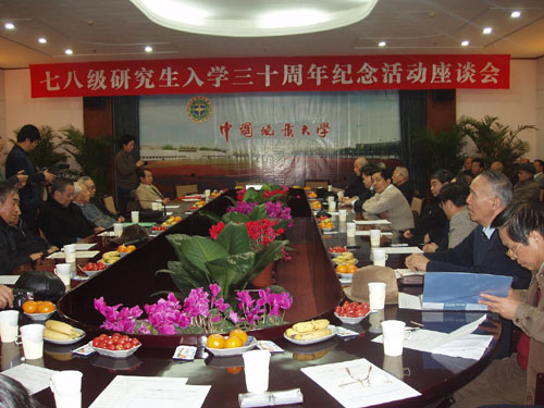 在12月6日和12月8日分別于武漢和北京舉行的兩個(gè)座談會(huì)上, 回到地質(zhì)大學(xué)母校的1978級研究生董振興,鄢泰寧, 楊昌明, 金鳴峰,韓紹緒, 岑況等著名教授和學(xué)者與此地大的一些著名老教授紛紛發(fā)言, 表達(dá)自己對鄧小平親筆批示的敬佩之情。表達(dá)自己對文革后中國研究生教育發(fā)展30年來蓬勃發(fā)展的充分肯定。(勞荊 / 地京 / 地漢)