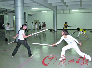 本報訊 (記者盧迎新 實習(xí)生 李婷婷攝影報道)暨南大學(xué)有個短兵協(xié)會,每周的周二、周四、周日晚上,會員們都集中練習(xí)。這種對抗性強(qiáng)的運動受到在校博士碩士們的熱捧,尤其吸引了一些平日里斯文纖弱的女博士加入,她們表示:“就算被打也很爽快,認(rèn)為是一種時尚!