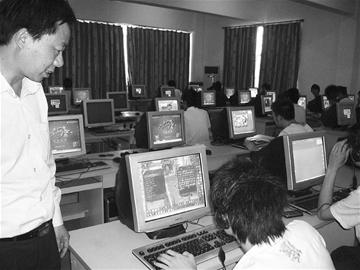 記者隨后來到某高級技工學!拔C室”,也看到了類似的情況。據(jù)學生們講,他們只須花10元錢買一張上網(wǎng)卡,就可以任意上網(wǎng)(每小時收費1元)。