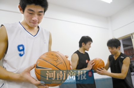 喝過茶,四個大男孩算是正式投入科比門下。隨后,他們送上事先準(zhǔn)備好的拜師禮:信陽毛尖和一對中國結(jié),中國結(jié)上印有科比全家福照片。洋師傅大喜過望,回贈了幾位“大弟子”簽名籃球和文化衫。如今這些已成了鄭大籃球隊(duì)的寶貝。