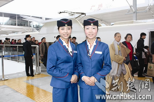 經(jīng)過三次試運行,12月26日,京廣高速鐵路武廣段正式開通運營,武漢火車站也同時投入使用。72名大學(xué)生“動姐”,正裝上崗,成為動車組上最靚的風(fēng)景。